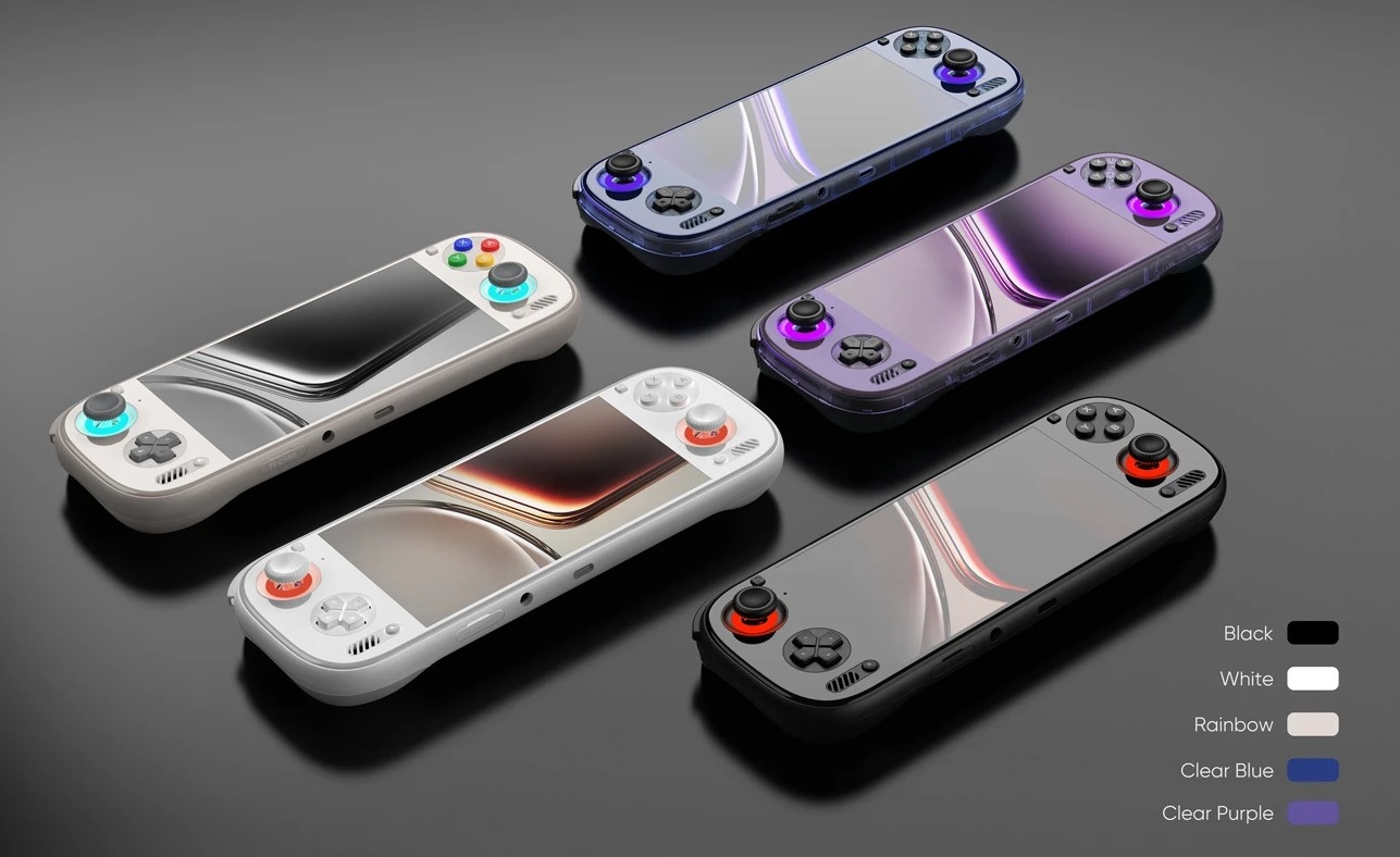 カラーリングは5色で、ブラック、ホワイト、スーパーファミコン風のレインボー、クリアブルー、クリアパープルです。